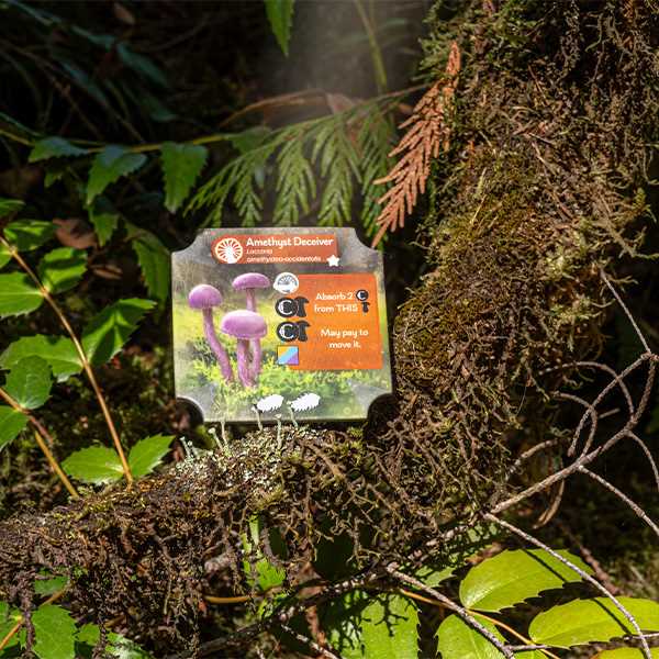 Undergrove a new game by Elizabeth Hargrave and Mark WoottonFor over 300 million years, trees have traded with fungi in an underground symbiotic relationship known as mycorrhizas (my-co-RISE-ahs). Trees offer some of the carbon they photosynthesize in exchange for nutrients that the fungi extract from the soil. Scientists continue to make new discoveries about this hidden world. Including hints that some of the carbon may go through the fungal network and into trees’ seedlings.In this game, you will play a mature Douglas-fir tree in the Pacific Northwest of North America. Your goal is to establish seedlings and help them successfully grow into trees. At the end of the game, the player who has grown the most successful set of seedlings with the most valuable symbiotic relationships will win.