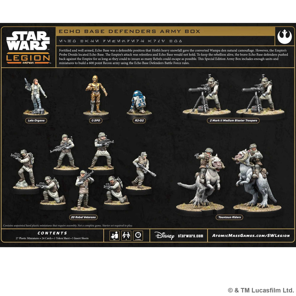 This Echo Base Defenders Special Edition Starter Set contains a 600-point Recon-level army, including a Special Edition alternate sculpt General Leia Organa.