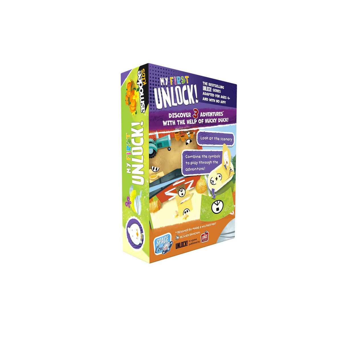 Discover 3 adventures with the help of Hucky Ducky! Look at the scenery. Combine the symbols to play through the adventure!