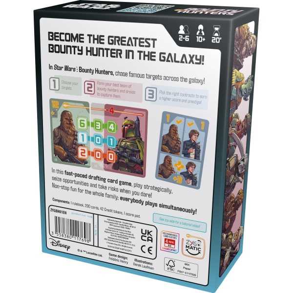 Recruit the best Hunters to capture prestigious Rebel Heroes and earn their bounty in this fast-paced draft game! Use hunter and equipment cards to capture rebel heroes. Collect crystals and complete special missions to earn even more points. Be careful not to pass on too many valuable cards to your opponents to win the game!