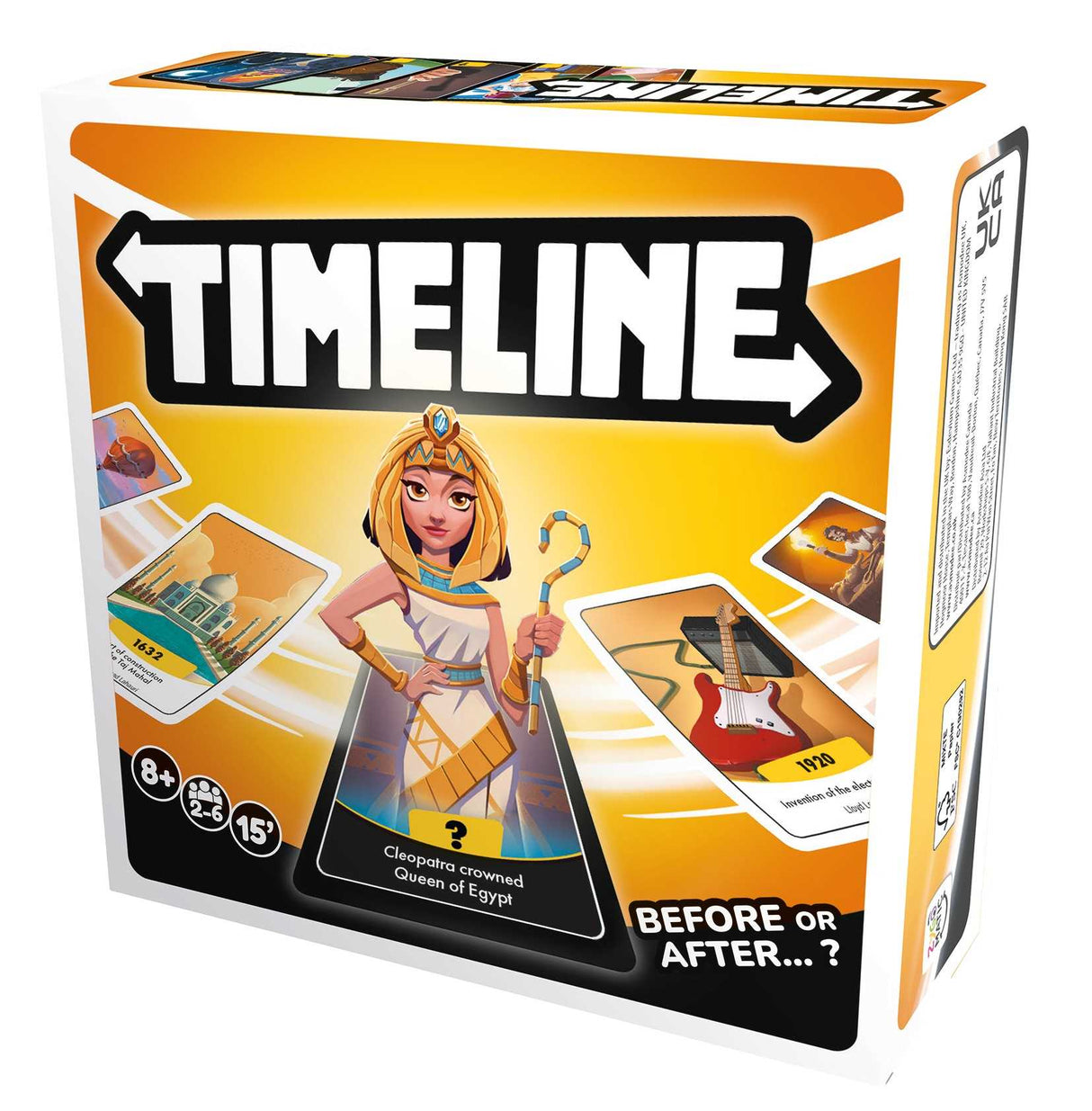 In Timeline, players place the events in the right position in the timeline. Guess the date of your event, place it in the timeline and if the date fits, leave it in place. The first player to correctly place all their cards win!