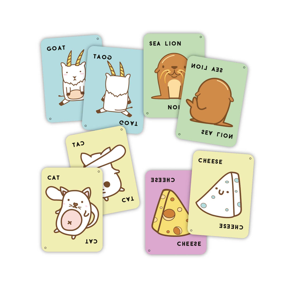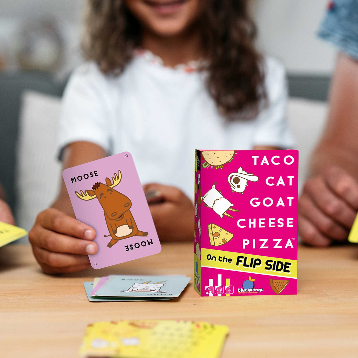 Taco Cat Goat Cheese Pizza is back with new characters and rules, On The Flip Side. This is the social card game that is going to flip your game night completely upside down! Race your friends in this hand slapping, laugh inducing, action packed version of our wildly popular party game, Taco Cat Goat Cheese Pizza, But - watch out! You can easily be fooled with its crazy reversed twist! This game is fast, fun and friendly...
