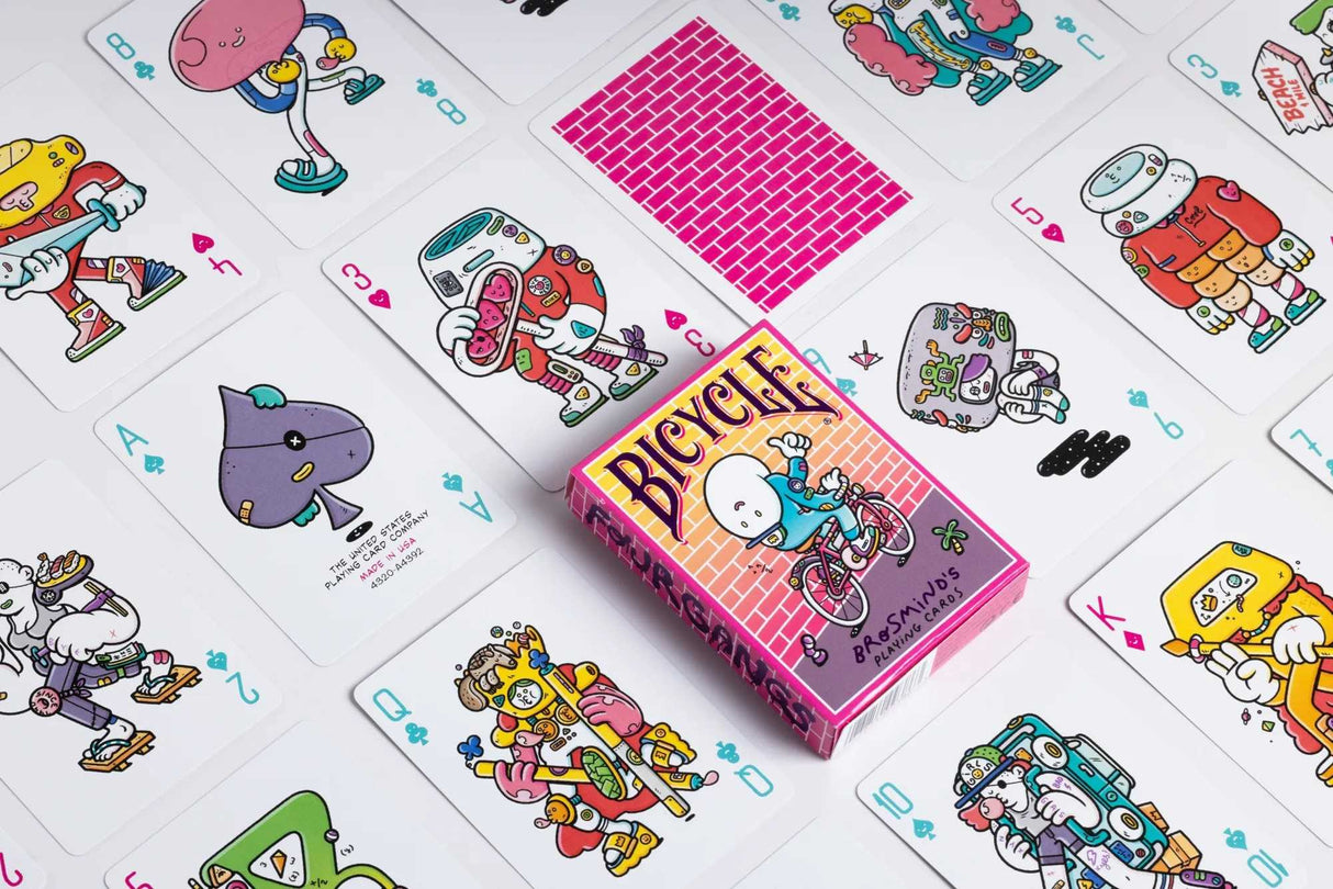 Designed by the artists at the Spanish design studio Brosmind, these trippy Bicycle Playing Cards feature a completely custom premium design with 56 unique playing cards, each with a different illustration. Playing cards that truly are, one-of-a-kind while remaining perfectly playable for Poker, Blackjack, and other card games!