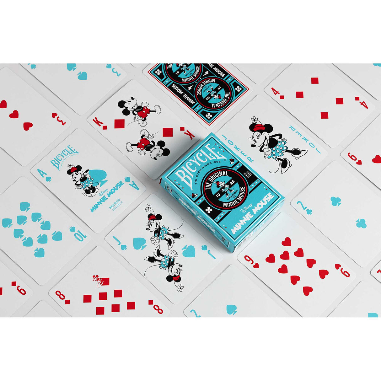 Step aside boys, the ladies are here! Introducing Disney Classic Minnie Mouse Inspired Playing Cards by Bicycle, featuring Mickey Mouse's better half. With a baby blue spot varnished tuck, and custom designed Minnie Mouse card backs, this deck is perfect companion to your next girl's night!