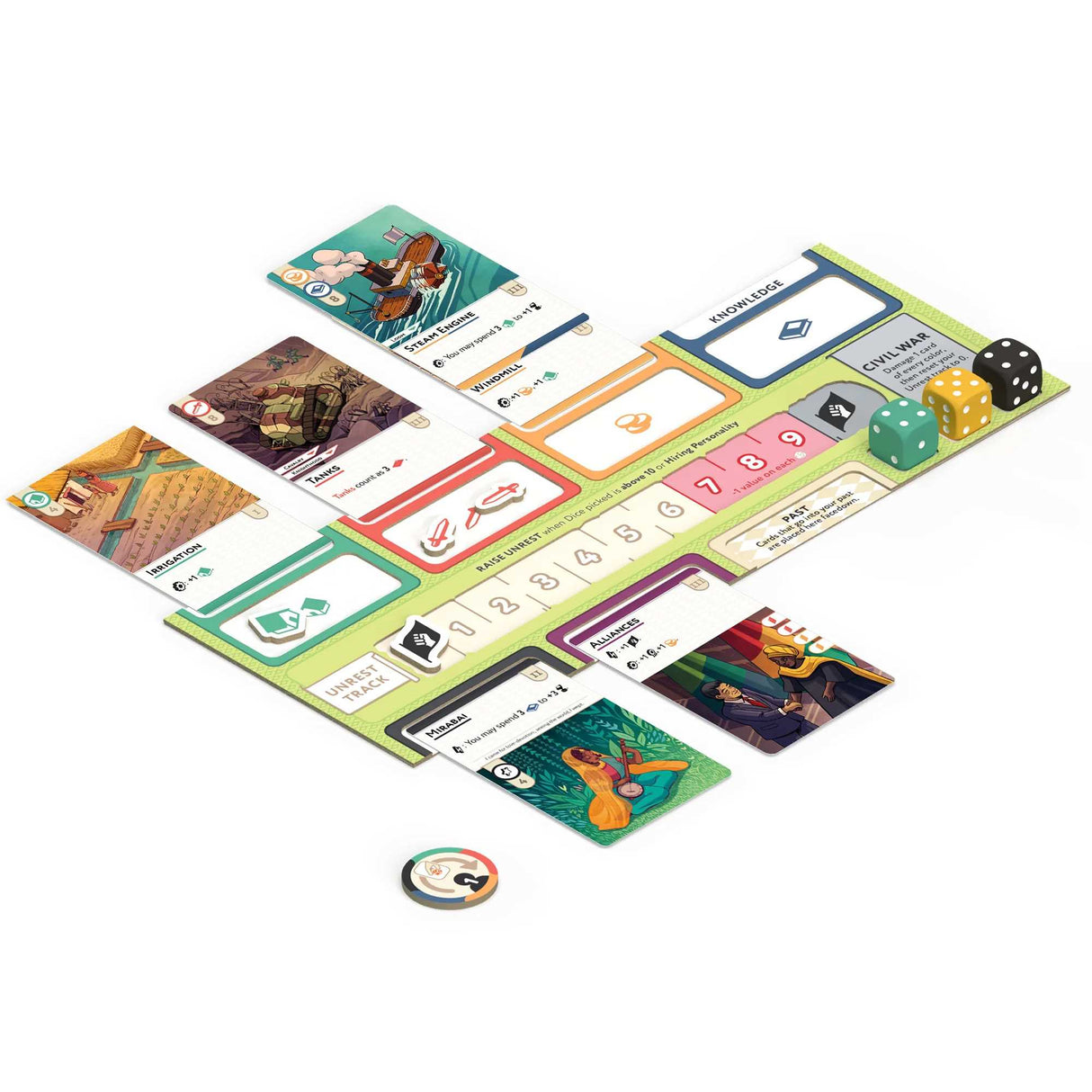 An accessible Civilization game for players who enjoy a deep economic, building experience but do not want the heavy complexity of other similar games. This game attempts to fill the gap for simpler Civilization games compared to the market’s more recent complex entries like Tapestry. Accessible gameplay, deep decision making, great replayability, beautiful artwork.