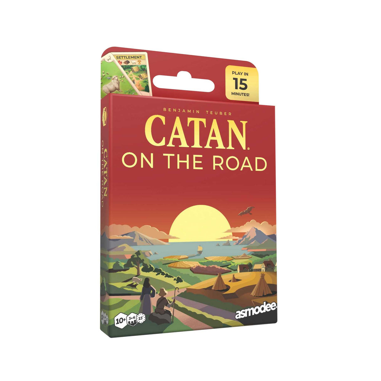 In CATAN – On the Road, gameplay is driven by a deck of 120 cards and builds on well-known CATAN mechanics with a fresh variation. Players gather resources by drawing cards, construct developments from a common set of available choices, and negotiate trades either with the bank or with fellow players. Trading plays an even larger role in this version: any player who trades while it is not their turn is rewarded with an extra resource card.