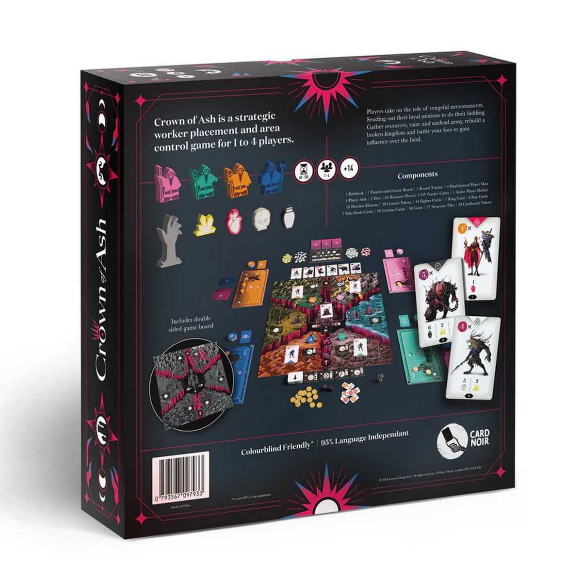 Crown of Ash is a strategic worker placement and area control game for 1 to 4 players.