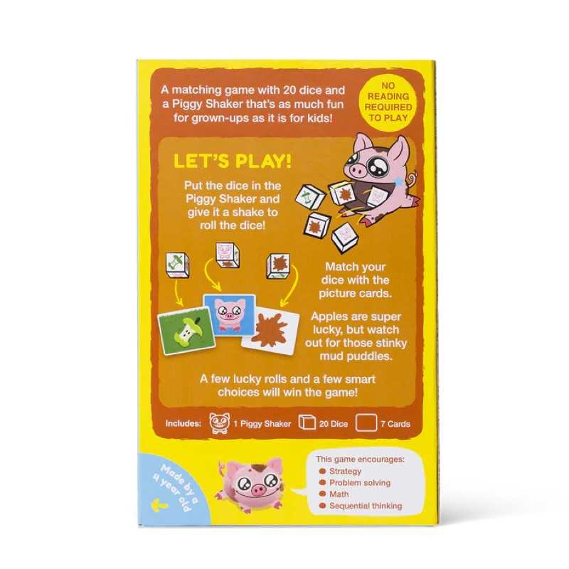 Shake up boring game nights with this dice game that’s fun for the whole family. Toss the dice in the Piggy Shaker – specially made for little hands! Match the dice with the Picture Cards. Apples are super lucky, but watch out for those stinky mud puddles! The first player to get rid of all their dice wins. This family game is a great way to introduce kids to critical thinking and decision-making skills--it's preschool prep disguised as a stinkin' good kid game.