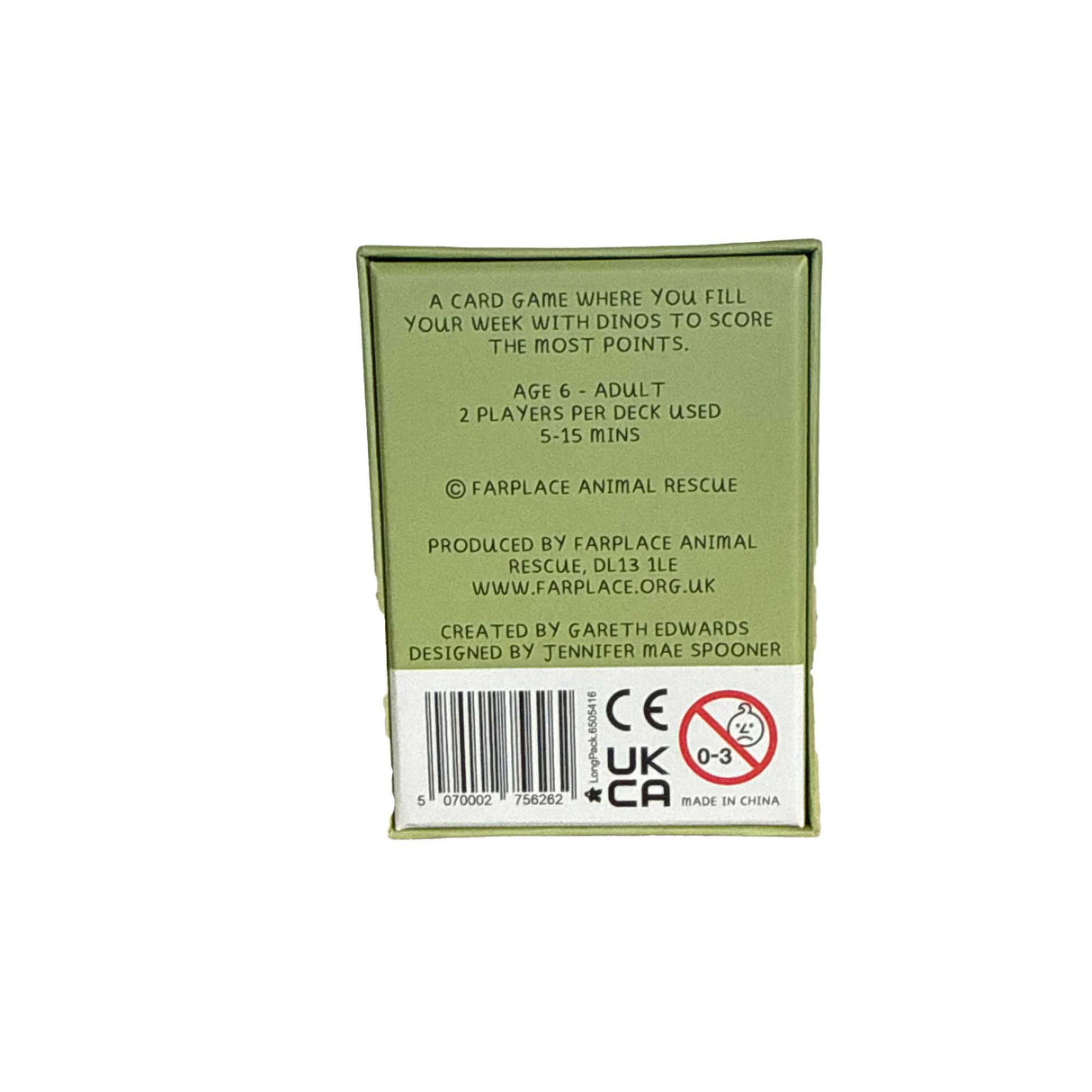 A short strategic card game where you want to fill your week of dinos and score more points than anyone else. Start with a giganotosaurus, enabling you to wipe out an opponent’s board once, but giving them 10 points.