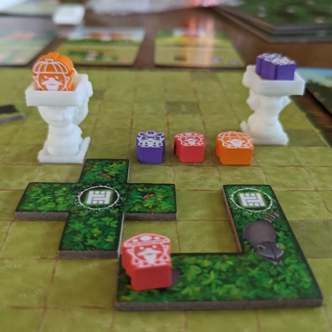Build a hedge maze of polyominos to prevent your rival from stealing your gnomes, all while navigating your other neighbor’s maze to nab their gnomes. It’s a wizard vs. wizard prank war and no gnome is safe! But this is a neighborhood of moderately powered Hedge Mages, with only two powers: grow shrubs, and animate garden gnomes. To sneak into your neighboring mage’s yard to nab their gnomes, while keeping another rival mage from snagging yours, it’s going to take both powers you’ve got. Harness your horticulture magic to gather the greatest gnome collection!