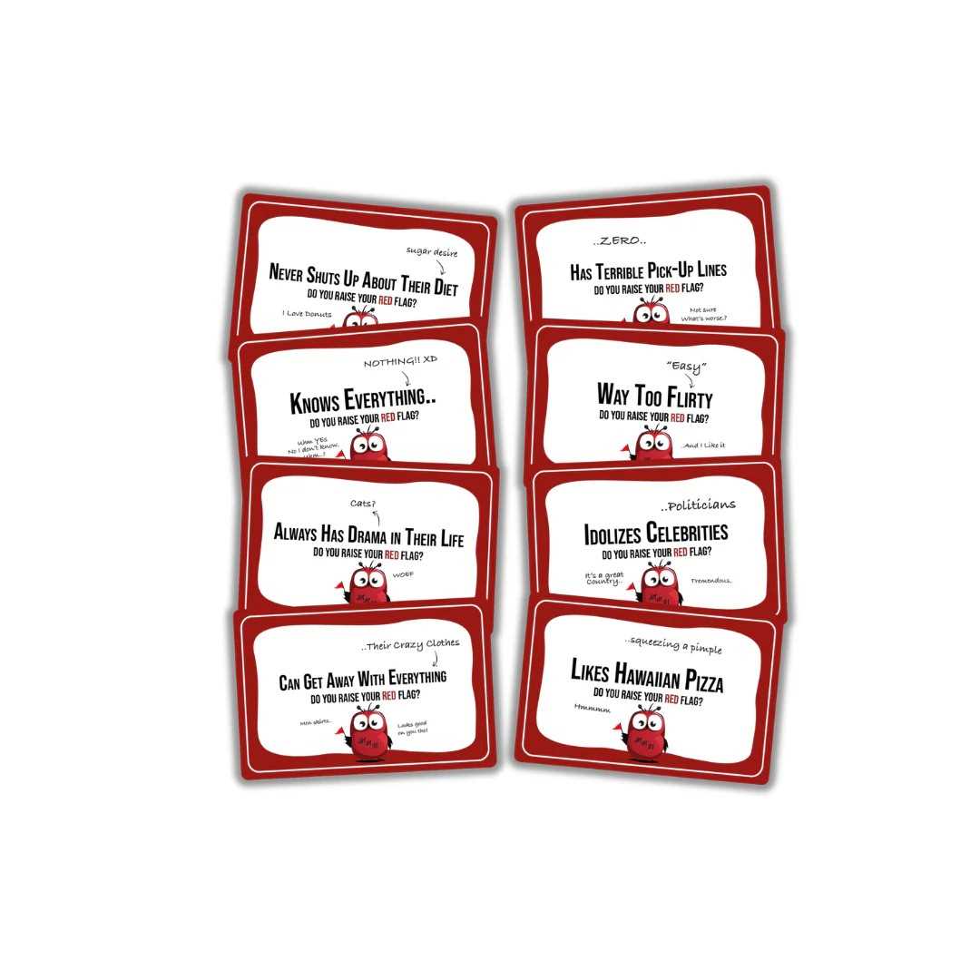 In Raise Your Red Flag, you and your friends take turns reading bold, hilarious, and slightly too-real red flag statements — like “Thinks they’re a social media influencer” or “Would definitely ghost someone after a first date.” But that’s just one way to play.