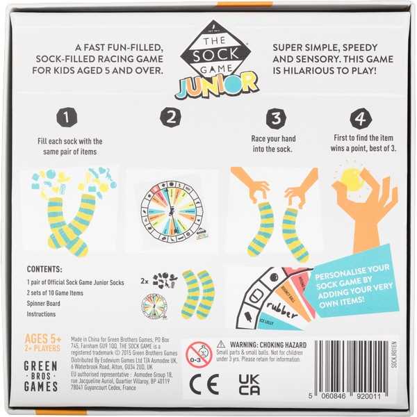 Fingers at the ready for The Sock game Junior. Take some kids (ok, adults can play too) and a sock filled with 10 fun items and you've got yourself a cracking family game. With great new rounds teaching colours and letters, you can even make the game your own by adding items from the toy box!