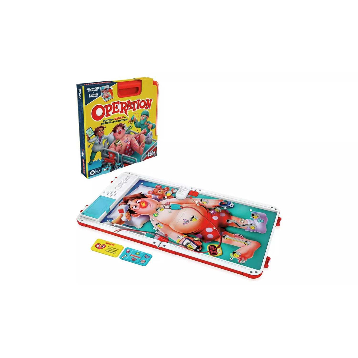 You're—BZZZT! —basically a doctor. It's the favorite kids board game with exciting updates! In this edition of the Operation game, choose from 2 ways to play: classic gameplay in Hospital mode or an edge-of-your-seat frenzy in Emergency mode. In Hospital mode, little doctors draw Bandage cards for wacky ailments. The suspense builds as they try to keep their hands steady while operating on Cavity Sam or—BZZZT! —his red nose lights up.