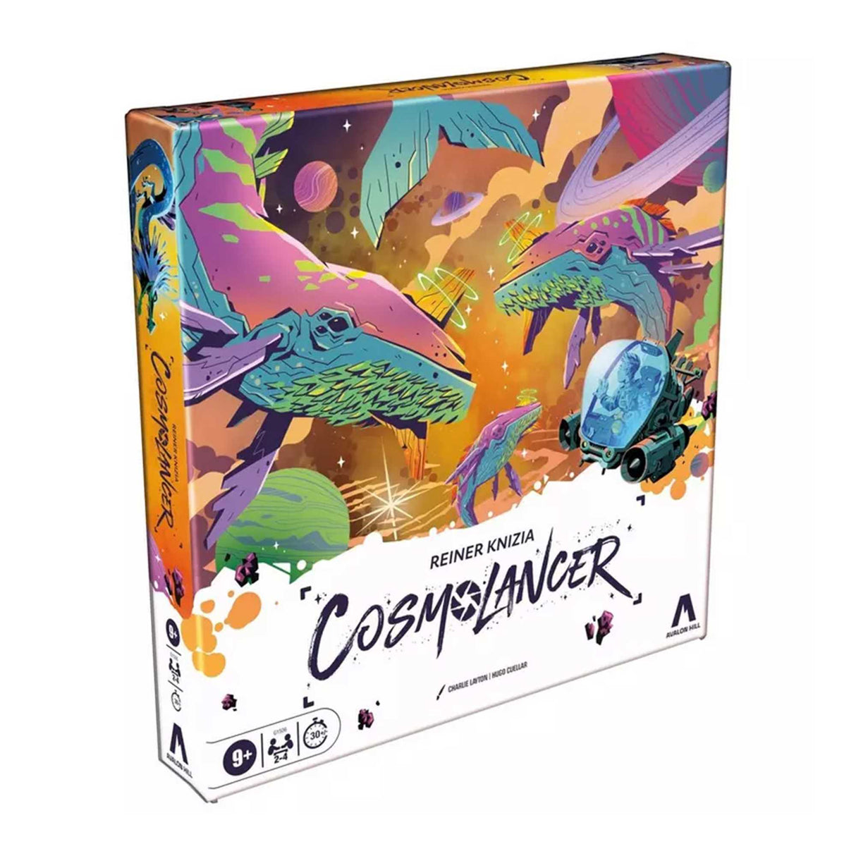 Congratulations, you’ve landed your first gig as a freelance space photographer—a Cosmolancer! While the pay is mediocre—and doesn’t account for the danger—Cosmolancing is your lifelong dream realized. Take to the stars in the Cosmolancer game, a galactic reimagining of the Kingdoms game by Reiner Knizia! Place Photo Op tiles, Hazard tiles, and Imaging Devices to capture the most lucrative photos of space phenomena. But stay alert for cosmic dangers that can sabotage your shots. Earn the most Interstellar Credits over 3 rounds to win! Strategy board games are fun games for game night and anytime play.