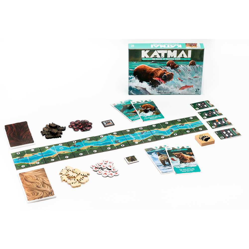A dynamic two-player card game of competitive area control, careful planning, and very hungry bears.In Katmai, you will be playing bears to advantageous fishing spots along Brooks River in order to gain dominance, satisfy challenges and catch delicious salmon. As the fishing spots fill up, you will need to choose your bears carefully, triggering unique abilities that will allow you to take advantage of situations and outwit your hungry opponent. Katmai weaves together simple mechanics with rich decision making to create an experience that is contemplative, competitive, and tense. Winter approaches and the wilderness is yours. It's time to feast!