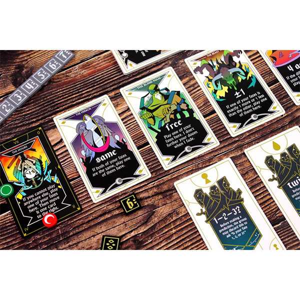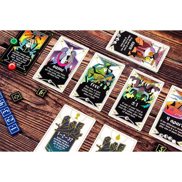 The Shipwreck Arcana is a compact, cooperative game of deduction, evaluation, and logic, combining simple, speedy play with incredibly deep strategy. Players take turns playing tokens according to rules found on an ever-changing tableau of cards, in order to convey information to the rest of the group before their doom arrives.