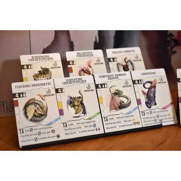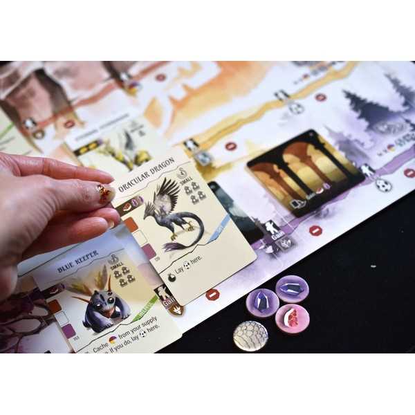 You are an amateur dracologist in the world of Wyrmspan, a place where dragons of all shapes, sizes, and colors roam the skies. Excavate a hidden labyrinth you recently unearthed on your land and entice these beautiful creatures to roost in the sanctuary of your caves. During a game of Wyrmspan, you will build a sanctuary for dragons of all shapes and sizes. Your sanctuary begins with 3 excavated spaces—the leftmost space in your Crimson Cavern, your Golden Grotto, and your Amethyst Abyss. Over the course of the game, you will excavate additional spaces in your sanctuary and entice dragons to live there, chaining together powerful abilities and earning the favor of the Dragon Guild.