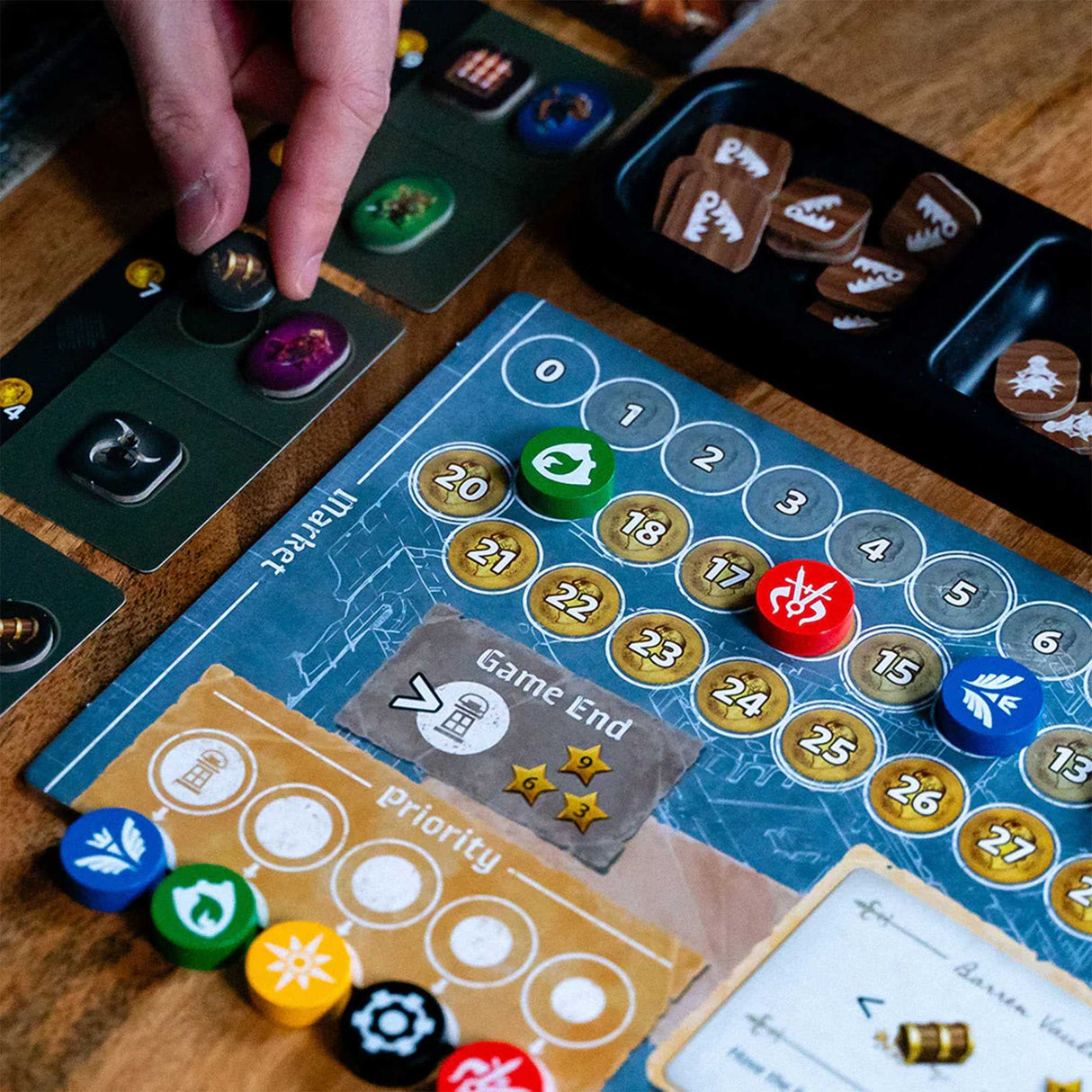 Stonespine Architects is a card-drafting game for 1-5 players where you compete to construct the most dangerous labyrinth.Players simultaneously draft and play cards to expand their dungeons, one chamber at a time. Follow a unique blueprint and a variety of scoring challenges. Choose between mapping a path through your underground tunnels, placing key elements in your rooms, or searching for extra riches.