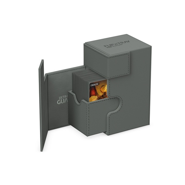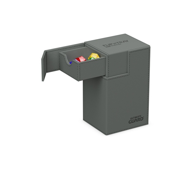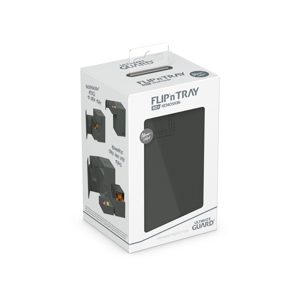 The quintessential Ultimate Guard deck box: a timeless monocolored design with strong magnetic closure, card and dice trays for safe storage of your deck, and a resistant but smooth Xenoskin surface. With room for 80 double-sleeved or 100 single-sleeved cards in standard size, the Flip'n'Tray 80+ has it all.
